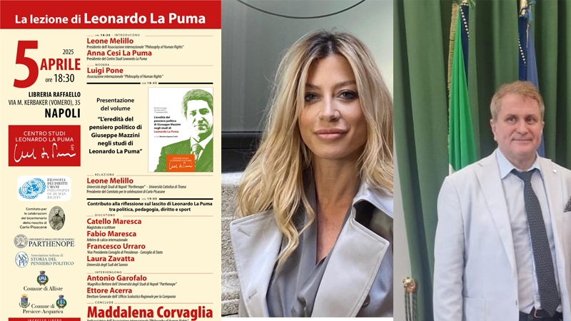 Come ha rammentato la Prof.ssa Anna Cesi – anche attraverso la prefazione del volume che sarà presentato – il “Centro Studi Leonardo La Puma ha il compito di “dare, attraverso la conoscenza degli studi di La Puma, un contributo alla formazione dei giovani, per creare insieme alle varie agenzie formative, in primis la scuola, dei cittadini che non siano spettatori passivi, ma protagonisti attivi della loro vita politica”. Un tema condiviso anche da Maddalena Corvaglia, che si attarda anche sulla povertà educativa, sottolineando la necessità di “un’azione mirata a garantire a bambini ed adolescenti, senza alcuna distinzione, la possibilità di apprendere, sperimentare, sviluppare e far fiorire liberamente capacità, talenti e aspirazioni”. Un tema promosso nella qualità di Ambasciatrice dell’Associazione internazionale “Philosophy of Human Rights”, insieme al Prof. Leone Melillo, che vuole avvalersi anche del “patto di amicizia e collaborazione”, fortemente voluto dal Sindaco di Napoli e presidente dell’Anci, Prof. Gaetano Manfredi, con particolare riferimento a progetti di ricerca tra Italia ed Albania, offrendo un rafforzamento della cooperazione internazionale e nello sviluppo della ricerca scientifica in settori di ampio impatto sociale.