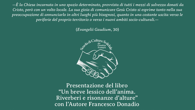 La Chiesa Santa Maria della Speranza di Scampia ospiterà martedì 29 aprile 2025 alle 18:45 un nuovo significativo appuntamento della “Scuola di cultura solidale”. Protagonista dell’incontro sarà Francesco Donadio, già ordinario di Storia della filosofia e Filosofia della religione presso l’Università Federico II di Napoli, che presenterà il suo ultimo lavoro “Un breve lessico dell’anima. Riverberi e risonanze d’alture”, pubblicato da Rubbettino Editore.