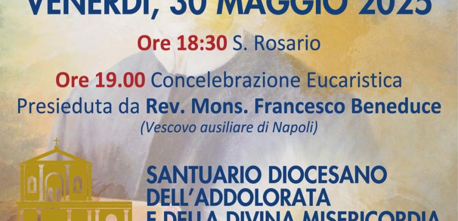 La celebrazione inizierà alle ore 18:30 con la recita del Santo Rosario, seguita alle 19:00 dalla Concelebrazione Eucaristica presieduta da Sua Eccellenza Reverendissima Mons. Francesco Beneduce, Vescovo ausiliare di Napoli.