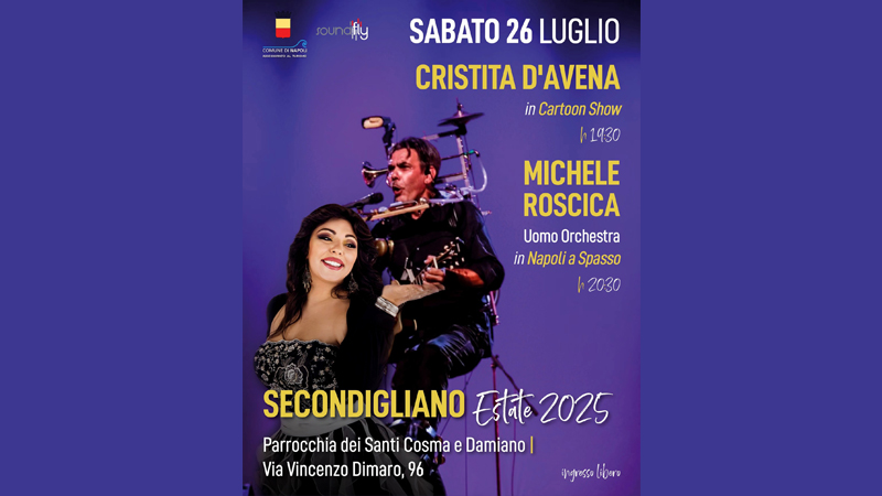 La giornata conclusiva vedrà protagonista alle 19:30 Cristita D’Avena con il suo “Cartoon Show”, un viaggio musicale tra le più amate sigle dei cartoni animati che hanno accompagnato generazioni di bambini. A seguire, alle 20:30, sarà la volta di Michele Roscica, conosciuto come “Uomo Orchestra”, che presenterà il suo spettacolo “Napoli a spasso”.