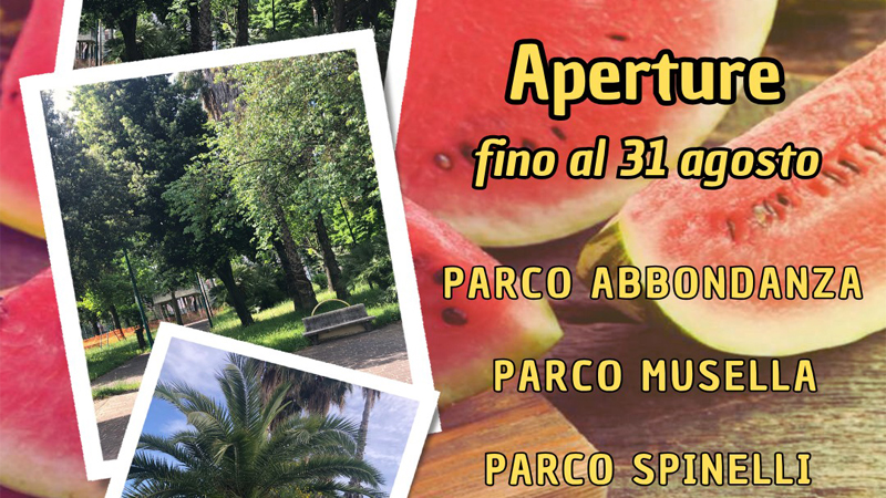 Il Parco “Spinelli” è il più semplice da ricordare, con un orario di apertura costante dalle ore 7 alle ore 20 per tutto il mese di agosto, senza chiusure straordinarie.