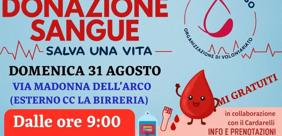 L’iniziativa si svolgerà in piazza Madonna dell’Arco (esterno Centro Commerciale La Birreria) dalle 9:00 alle 13:30. Tutti i donatori potranno usufruire di esami gratuiti.