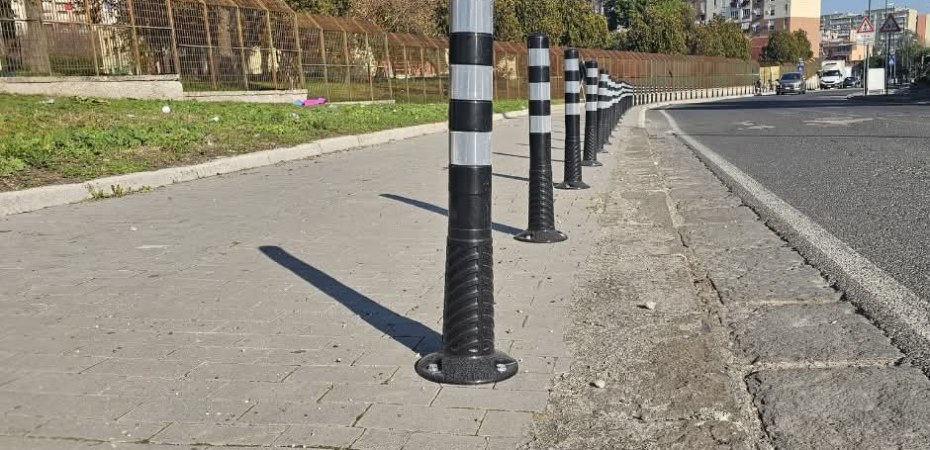I paletti installati sono realizzati in TPU, poliuretano termoplastico resistente e flessibile, e dotati di elementi catarifrangenti che garantiscono un’elevata visibilità anche nelle ore notturne e in condizioni di scarsa luminosità, aumentando così il livello di protezione per pedoni e studenti.