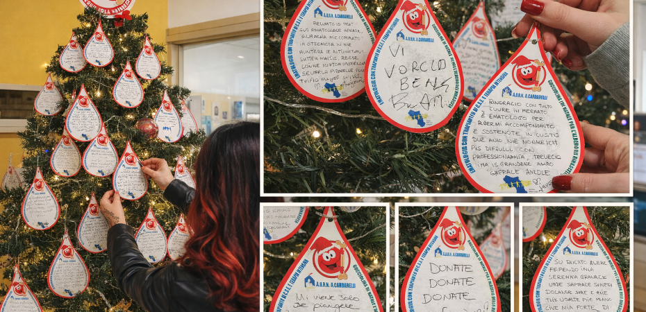 L’albero, allestito all’interno del reparto, è decorato non con le tradizionali palline natalizie ma con goccioline che rappresentano le cellule staminali. Su ciascuna gocciolina pazienti, familiari, operatori sanitari e visitatori possono lasciare pensieri, disegni, frasi e messaggi di incoraggiamento, trasformando l’albero in un racconto corale di vissuti, speranze e rinascite.