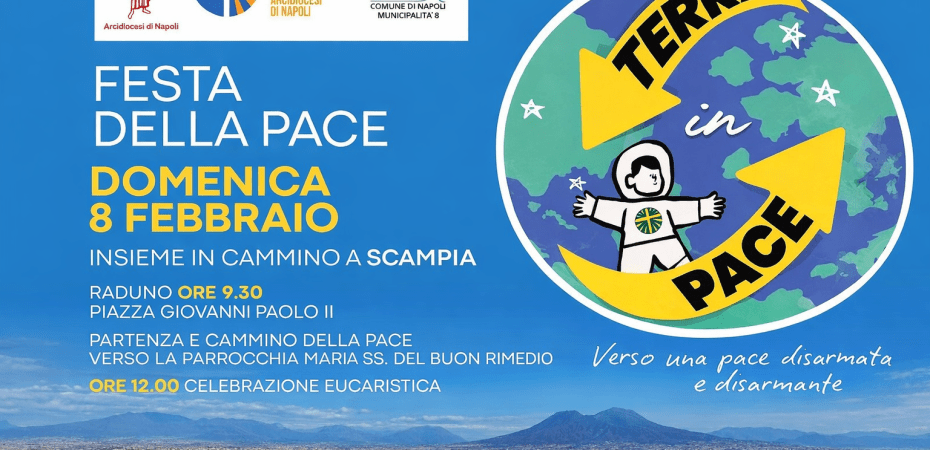 Domenica 8 febbraio Scampia sarà attraversata dalla Festa della Pace, iniziativa diocesana promossa dall’Azione Cattolica in collaborazione con l’Arcidiocesi di Napoli e con il patrocinio della Municipalità 8. Un appuntamento di particolare significato che coinvolgerà parrocchie, associazioni e cittadini in un cammino condiviso, pensato per rimettere al centro il valore della pace come scelta quotidiana e responsabilità collettiva.