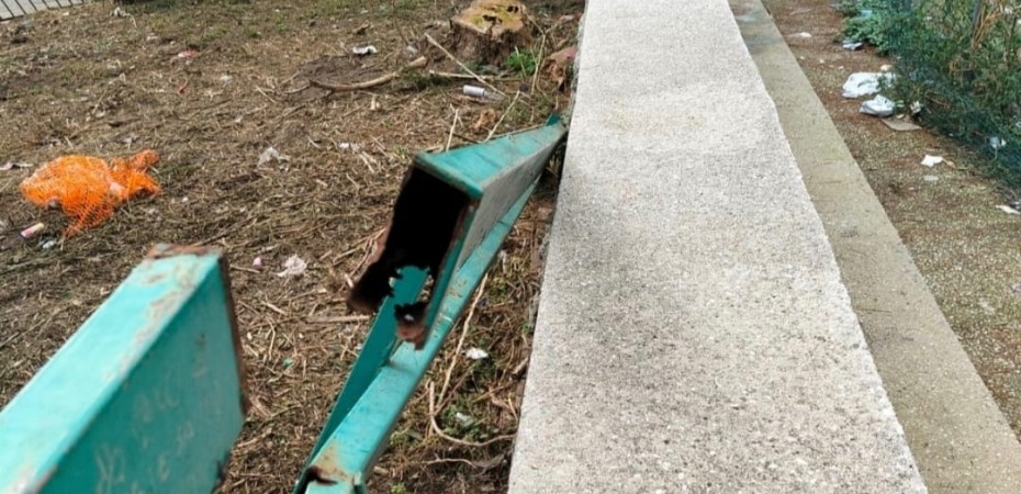 Nella segnalazione si evidenzia come il danneggiamento della struttura sia avvenuto in seguito alla caduta di un albero e come lo schienale metallico, ormai piegato e deteriorato, rappresenti un potenziale rischio per l’incolumità pubblica. Il campetto è frequentato quotidianamente da bambini e ragazzi del quartiere e la presenza della struttura pericolante aumenta il rischio di incidenti.