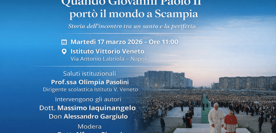 L’iniziativa è in programma domani, 17 marzo 2026 alle ore 11, presso l’istituto diretto dalla dirigente scolastica Olimpia Pasolini. Il libro, pubblicato da Rogiosi Editore, è stato scritto a quattro mani dal giornalista Massimo Iaquinangelo e dal parroco don Alessandro Gargiulo e racconta uno dei momenti più significativi della storia recente del quartiere: la visita di papa Giovanni Paolo II a Scampia nel 1990.