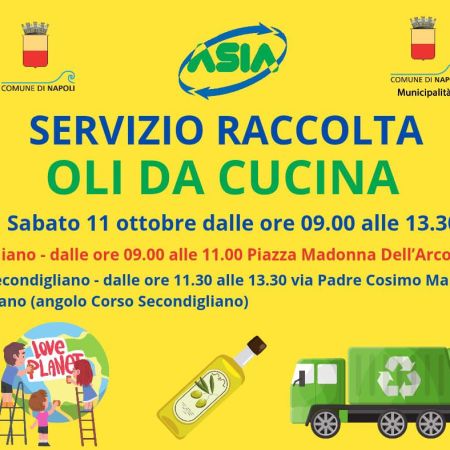 Raccolta itinerante di olio esausto: nuova tappa sabato 11 ottobre nei quartieri di Miano e Secondigliano
