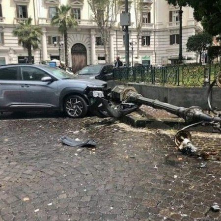 Piazza Vanvitelli, perde il controllo dell’auto e abbatte un palo della luce