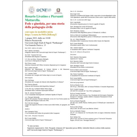31/05/2022 periferiamo Rosario Livatino e Piersanti Mattarella, fede e giustizia: convegno all’Università Parthenope