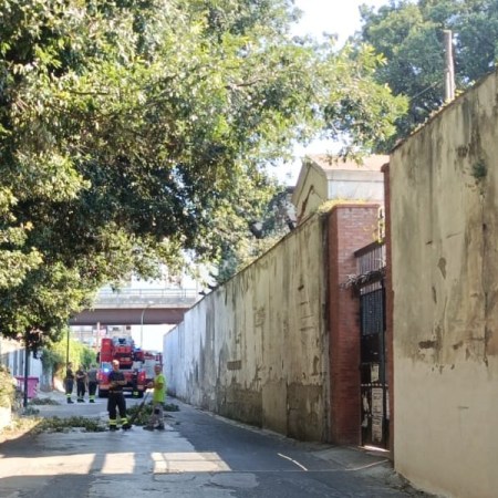 Miano, crolla grosso albero nel cimitero chiuso: intervento di vigili del fuoco e polizia municipale