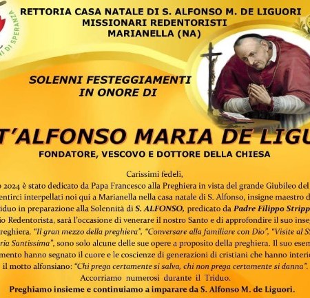 Festa di S. Alfonso Maria de’ Liguori: il programma delle celebrazioni a Marianella