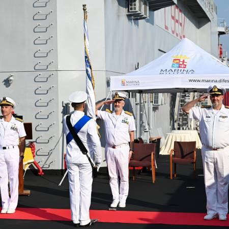 Passaggio di Consegne alla San Giusto, Il contrammiraglio Valentino Rinaldi lascia il Comando al Kommodoro Kostantinos Bakalakos