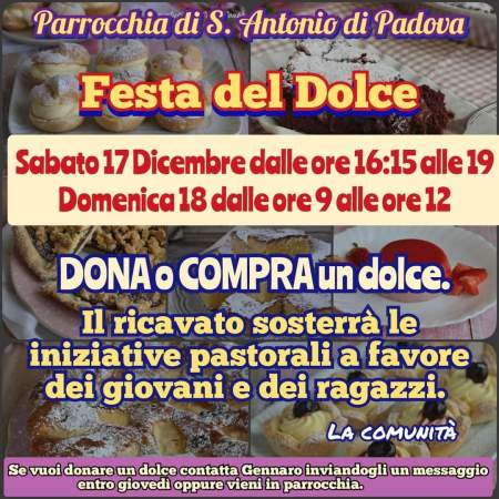 11/12/202211/12/2022 periferiamo Secondigliano, alla parrocchia S. Antonio di Padova Festa del dolce per sostenere le attività giovanili