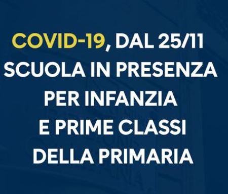 Covid, in Campania il 25 novembre riprendono in presenza scuole dell’infanzia e prime